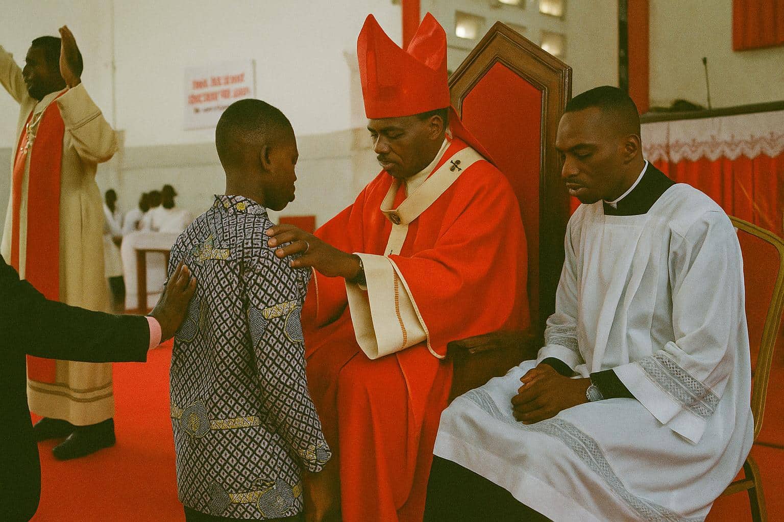 Le 8 juin 2025, la paroisse Notre-Dame des Apôtres de Sangolo a revêtu ses habits de fête. Sous les voûtes claires de l’édifice, 123 fidèles issus du doyenné Saint-Pie X avançaient, mains jointes, vers l’archevêque métropolitain de Brazzaville, Mgr Bienvenu Manamika Bafouakouahou. La date n’était pas fortuite : la solennité de la Pentecôte rappelle, cinquante jours après Pâques, l’effusion de l’Esprit sur les premiers apôtres, souvent décrite comme la « naissance de l’Église universelle ». Dans un quartier où l’urbanisation rapide redessine les habitudes, la cérémonie offrait un moment de respiration collective, porteur d’un sentiment d’appartenance qui dépasse les limites paroissiales.