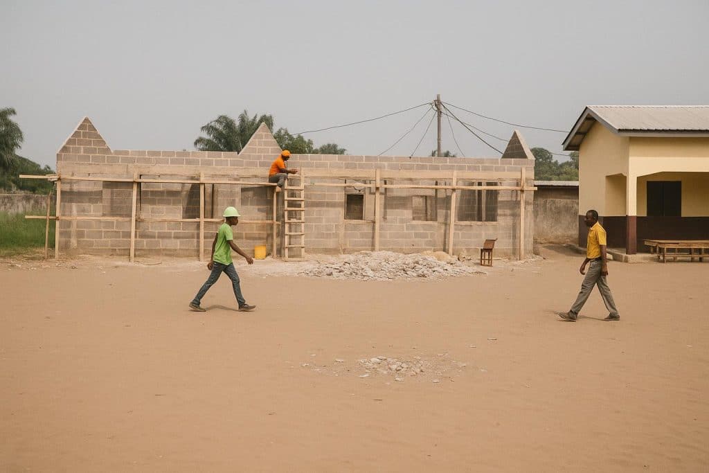 Dans le quartier Ngamakosso, le chef de quartier Julien Mboungou se réjouit déjà. « Nos enfants commenceront les cours le premier jour, sans avoir à errer sous un arbre », confie-t-il, un casque de chantier sous le bras, aux riverains rassemblés.