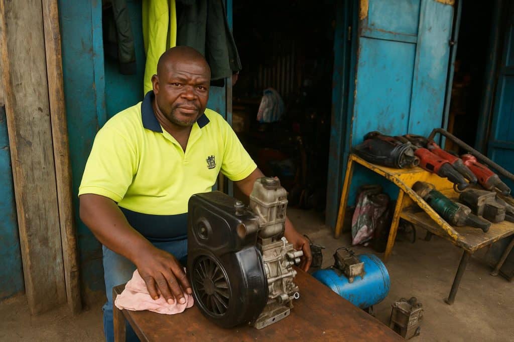Autodidacte, l’homme a passé vingt ans à apprendre, vis et écrous en main, la mécanique des générateurs qui remplacent souvent le réseau électrique municipal. Depuis trois ans, il transmet gratuitement ce savoir à ses pairs, convaincu que « le meilleur secours, c’est un métier », confie-t-il.
