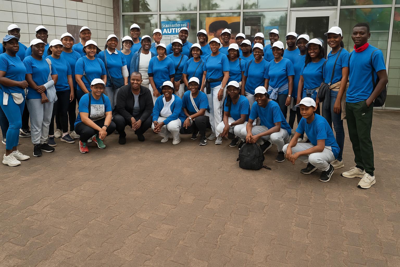 Le 21 septembre 2025, un flot de tee-shirts bleu azur a traversé le centre de Brazzaville. Près de cinquante marcheurs ont quitté la place de la République, direction le Mémorial Pierre Savorgnan de Brazza, pour attirer l’attention sur l’autisme.