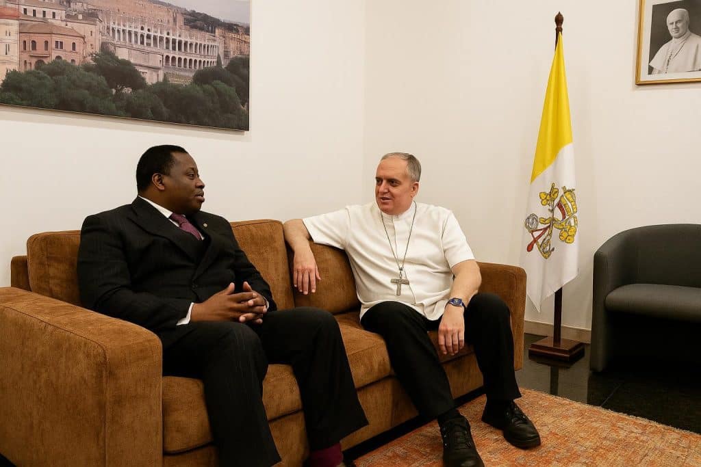 Dans le salon lumineux de la Nonciature, les deux hommes, accompagnés de Joachim Mbanza et Placide Milandou, ont échangé pendant près d’une heure. Le sénateur a exposé le programme, les partenaires pressentis et les objectifs, avant de demander un accompagnement moral et spirituel de l’Église catholique.