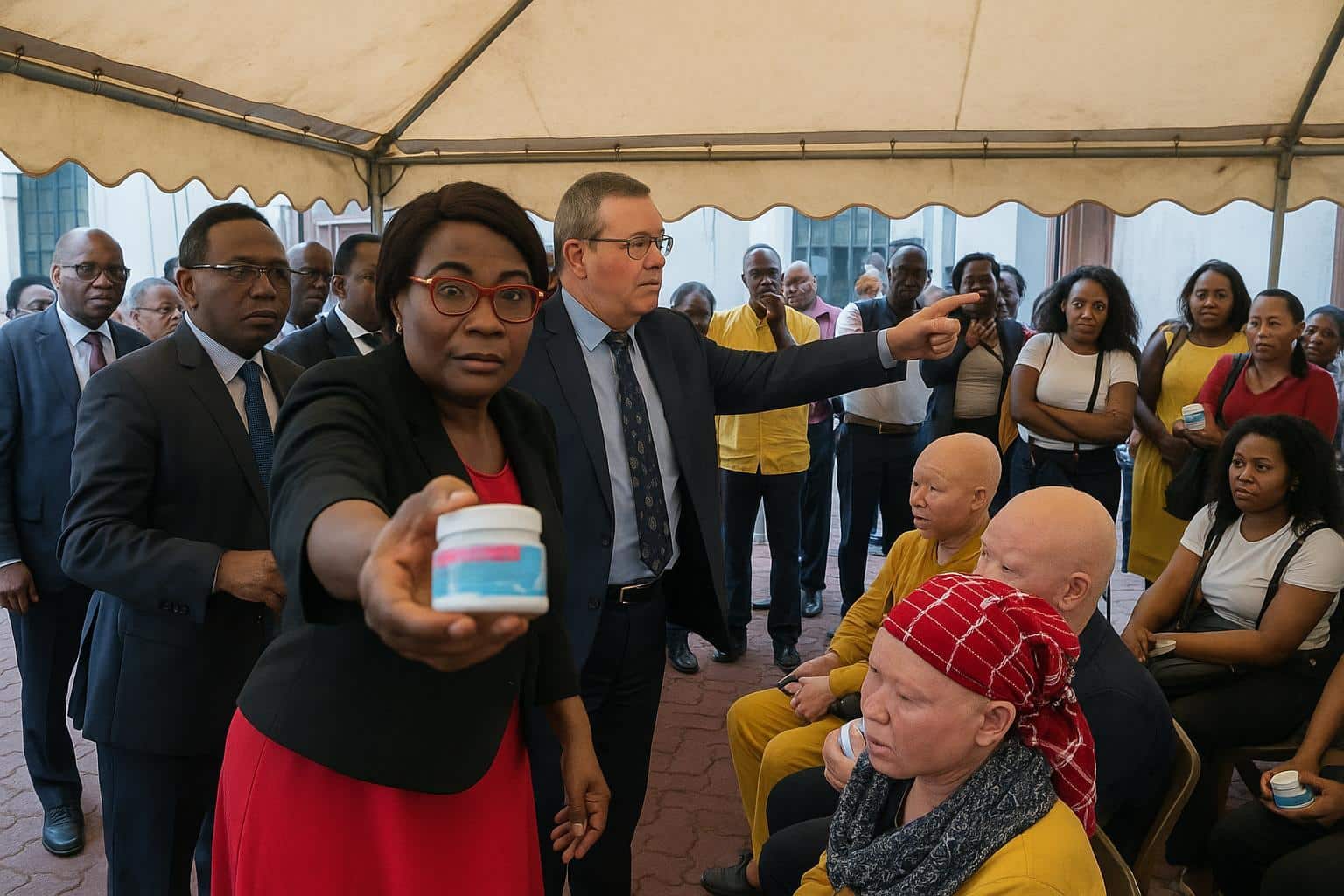 Faute de mélanine protectrice, leur peau brûle en quelques minutes sous le soleil. Jusqu’ici, les crèmes importées, vendues à des prix prohibitifs, restaient inaccessibles pour des familles vivant souvent sous le seuil de pauvreté. La réponse locale devenait alors une question de survie.